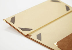 Le room-directory PORTFOLIO est un room directory trois volets avec encoches en tissu pour feuilles A4. Des coins métalliques assurent la protection des angles.